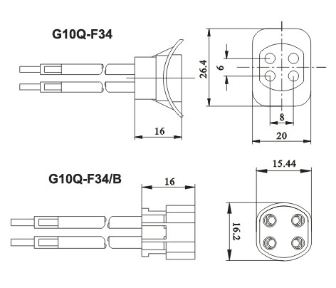 G10q F34 lamp holders are typically made from durable materials such as ceramic or high-temperature plastic, and are designed to provide a secure and stable connection between the lamp and the electrical circuit.